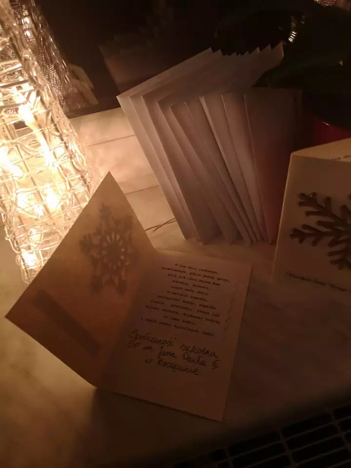Członkowie szkolnego koła wolontariatu się nie obijają. Powstały piękne kartki świąteczne, które zostały przekazane emerytowanym pracownikom naszej szkoly, instytucjom, z którymi szkoła współpracuje oraz podopiecznym DPS w Koszęcinie.