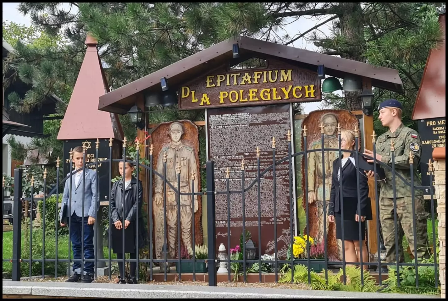 Spotkanie rozpoczęło się Apelem dla Poległych, który poprowadzili lektorzy - uczestnicy grupy teatralnej „Rozkochaj się w Teatrze” prowadzonej przez Stowarzyszenie Montownia. Zuzanna Jonczyk, Paweł Kornowski, Ewa Jarząbek oraz Jakub Sozański przy akordzie werbla Marcina Cichowskiego wspominali wszystkich poległych Koszęcinian, którzy zostali zamordowani lub polegli na frontach II wojny światowej, przybrani w różne mundury. Złożono również kwiaty i znicze pod pomnikiem „Epitafium dla Poległych”.